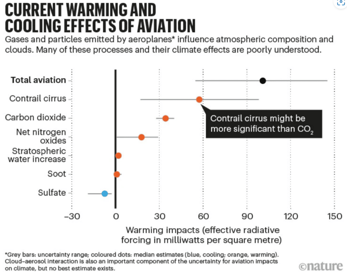 This doesn’t account for its non-CO₂ impacts (NOx, water vapour, contrails and aerosols). If its non-CO₂ emissions are accounted for, it has been estimated that aviation could be responsible for 4% of already observed human-induced warming. But safe to say, most conversations around decarbonising aviation don't pay much attention to these highly impactful emissions.